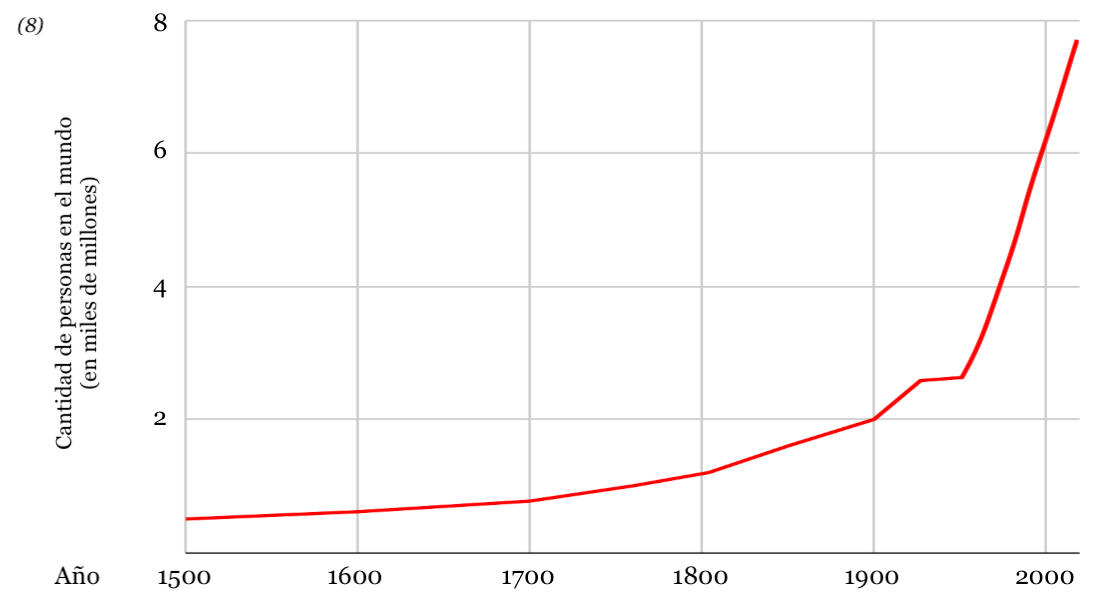 Si este gráfico representara el total de individuos de la población de un determinado animal no-humano a lo largo de los años, la gente clasificaría rápidamente a esa especie como una plaga y pediría por su exterminio pero, como representa un aumento de seres humanos, lo llaman progreso.Los recursos de nuestro planeta son limitados y, ahora, escasos, ya que hemos hecho un abuso atroz de los mismos, tanto como nos ha resultado posible. Hay evidencia de sobra que demuestra que un simple cambio de estilo de vida permitiría frenar el cambio climático y la desertificación de bosques y selvas(9) y, a la vez, alimentar a toda la población mundial(10), pero como ese estilo de vida es el veganismo, muy poca gente acepta esta realidad, y menos gente aún hace la transición al mismo.